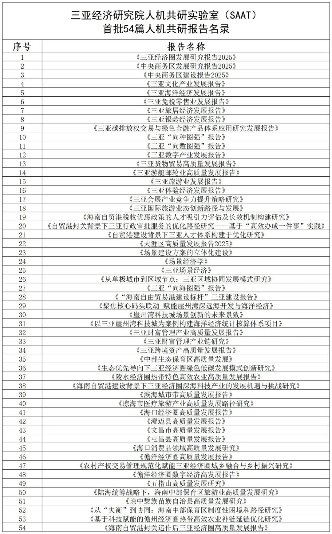 为服务海南自贸港建设,三亚经济研究院人机共研实验室(SAAT)现开放54篇人机共研报告、47 份人机共评榜单等核心成果合作通道,成果覆盖自贸港发展关键领域与民生消费场景,兼具政策参考与实践价值。