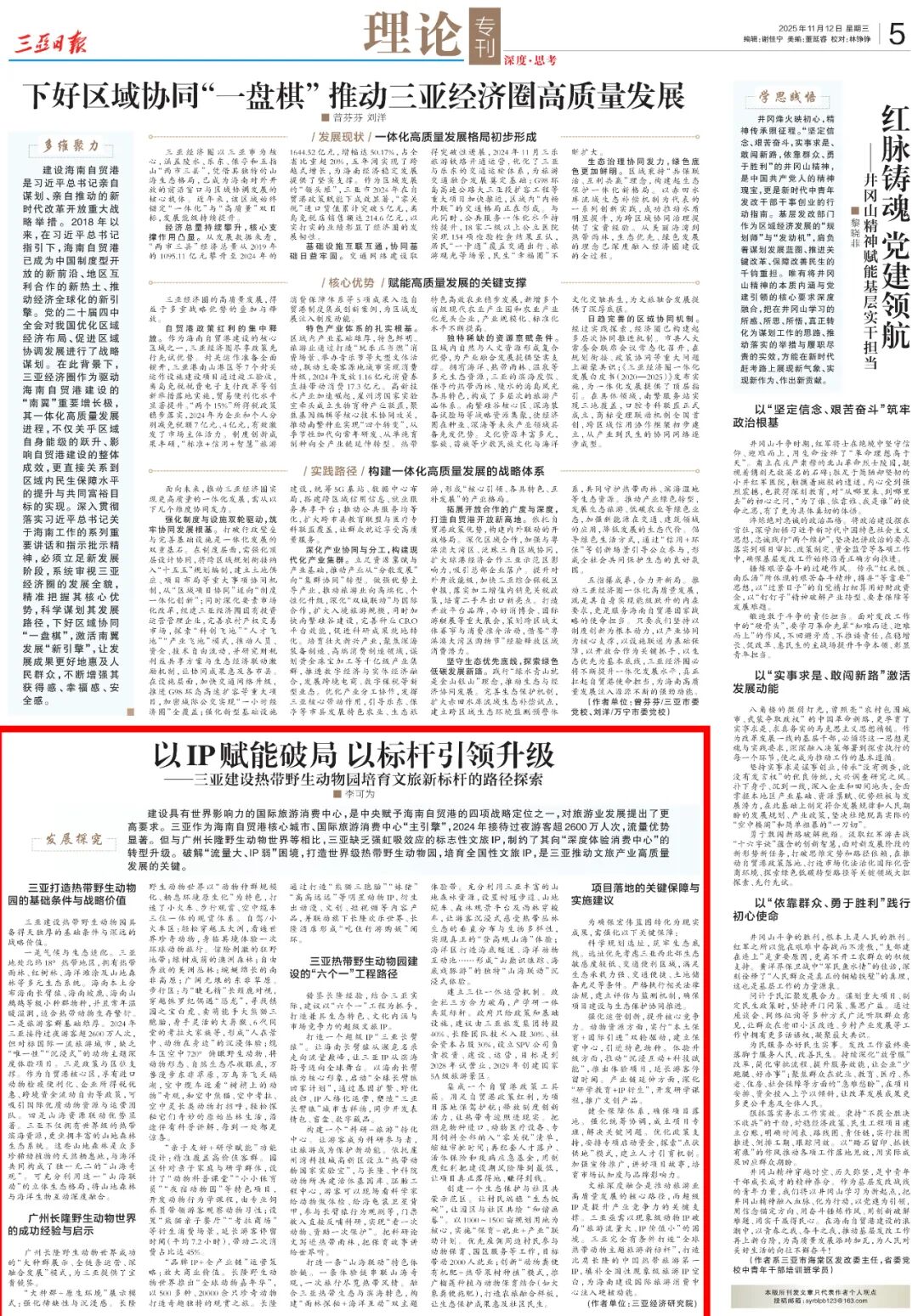 文旅深度融合是推动旅游业高质量发展的核心路径,而超级IP是提升产业竞争力的关键支撑。三亚亟需以现象级动物IP破局“旅游流量大、IP价值小”的困境。三亚完全有条件打造“全球热带动物主题旅游新标杆”,打造比肩长隆的中国热带旅游第一IP,填补全国性现象级旅游IP空白,为海南建设国际旅游消费中心注入硬核动能。