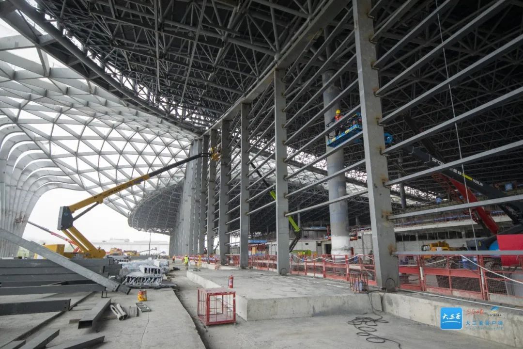 海南机场集团项目现场负责人介绍,三亚凤凰国际机场三期改扩建项目核心工程T3航站楼混凝土结构以及钢结构已实现封顶,正在交叉推进航站楼屋面、幕墙、二次结构以及机电工程等工序施工。其中,二次结构施工基本完成,幕墙、机电安装均已完成过半。
