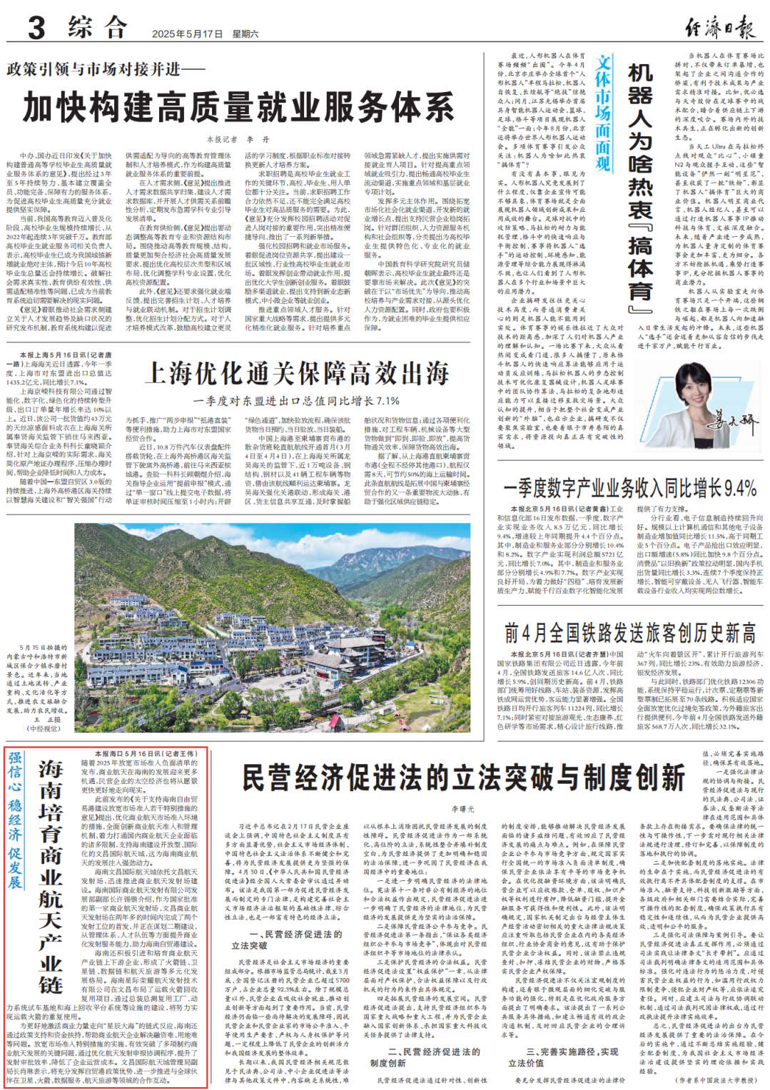 5月17日,经济日报03版刊发文章《海南培育商业航天产业链》,版面图及全文如下: