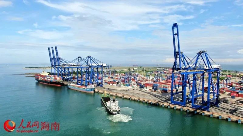 大型运输船在洋浦国际集装箱码头装载货物。人民网记者 符武平摄